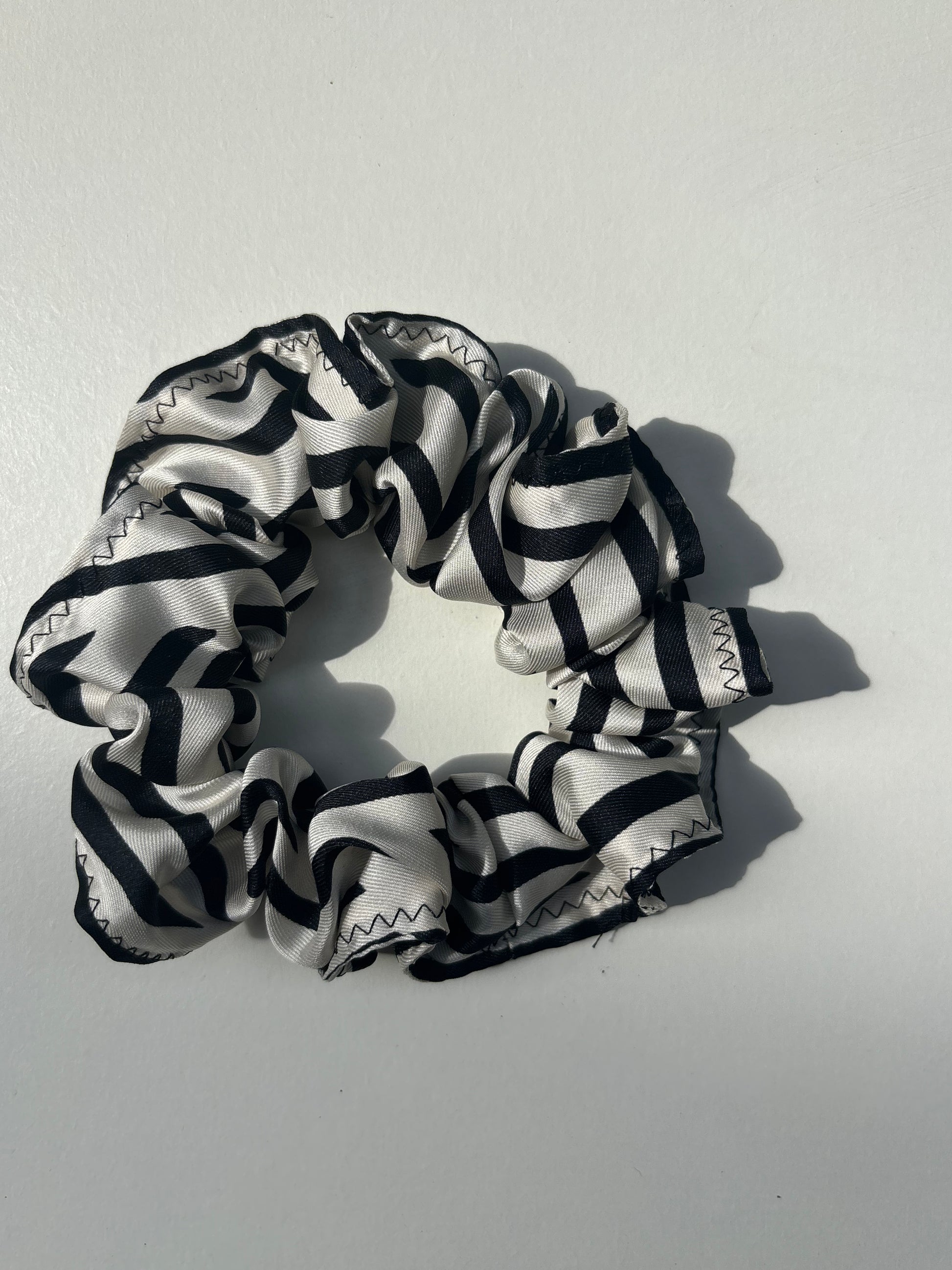 Dona un tocco elegante e selvaggio ai tuoi look con questo scrunchie in seta a fantasia zebra.